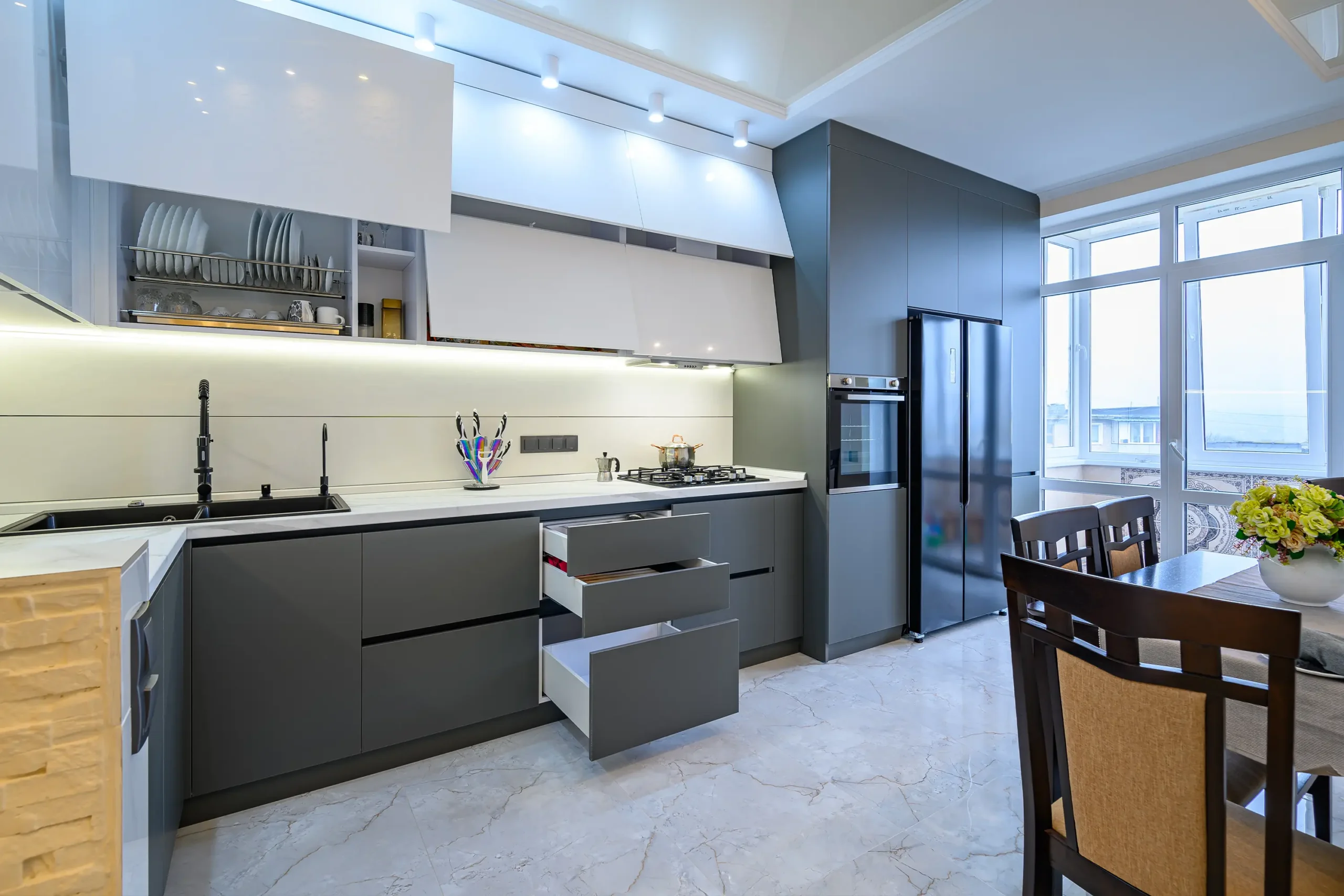 Rediseño funcional y acabados durables. Instalación de gabinetes prefabricados (o coordinación si son a medida).